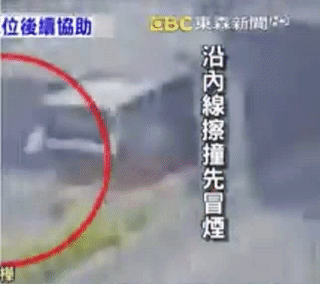 19日中午12时57分,台湾桃园机场联络道发生自撞车祸。一辆游览车因不明原因撞上护栏,整辆车起火燃烧。警消随后说明,该车撞护栏前已经起火冒烟行驶。