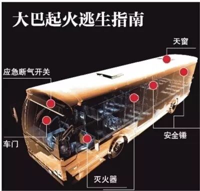 一般大巴车车厢前后顶部各有一个紧急逃生窗。