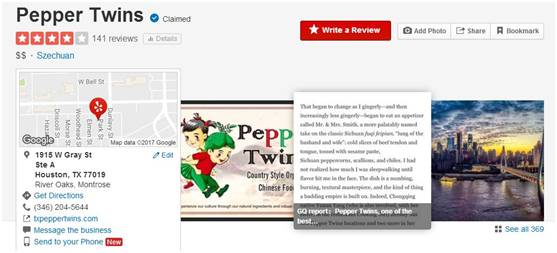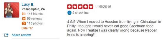 而在Yelp(相当于国内的大众点评)网站上,Pepper Twins的总体评价是四星,但很多顾客在下面的点评里给了五星,并且不吝赞美之词。