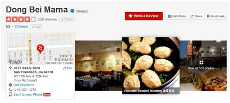 除了川菜,中国的其他很多菜式在Yelp上也都很受欢迎。比如——东北菜