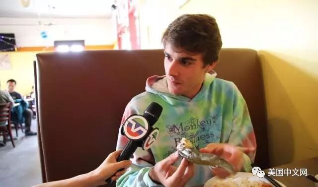 David是伯克利的學生,一直對中國文化都很感興趣,在學校也選修了不少中文課,所以端午節對于他來說,並不算陌生。不過,今天也是他第一次吃粽子。David拿到的是五谷粽,裏面有玉米、綠豆、紅豆等等。David評價這個粽子非常有嚼頭,甜甜的味道非常符合他的胃口。直到拍攝結束後,我們才知道原來David會講一些中文,他還向小編學習了端午節、粽子的中文說法,並用中文向我們獻上了端午節祝福。厲害了,word哥~