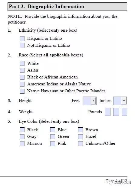 同时,新版表格还增加了以往只有配偶申请才需要提供的申请人族裔、发色、身高、体重、眼睛颜色等内容。