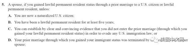 此外,婚姻绿卡申请人原来需要填写的G-325A表格被新的I-130A表格取代。新版表格填写规范中也清晰表示,如果申请人是通过与公民或绿卡持有者结婚获得的绿卡,将不具备为新配偶申请婚姻绿卡的资格,但不包括以下任何以一种情况:申请人已成为美国公民、申请人已持有绿卡至少五年、申请人能证明令其获得婚姻绿卡的上一段婚姻真实、或上一段令其获得婚姻绿卡的婚姻是因为丧偶而终止。