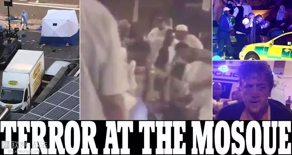 当晚,许多穆斯林正从芬斯伯里公园的清真寺出来。一辆白色的卡车却带着死神的镰刀,朝这些无辜的人们冲去。