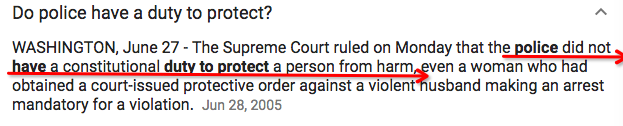 美国法律规定:美国警察没有保护人民生命财产安全的义务。