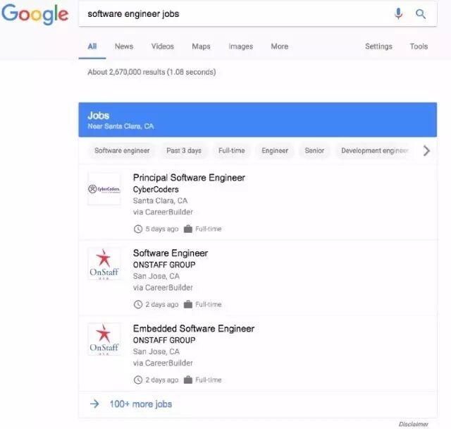 Google的设想是:为求职者提供一个找到招聘岗位的简单方法,而不是登录多个网站只能找到重复的招聘公告和和多个不相关的岗位。