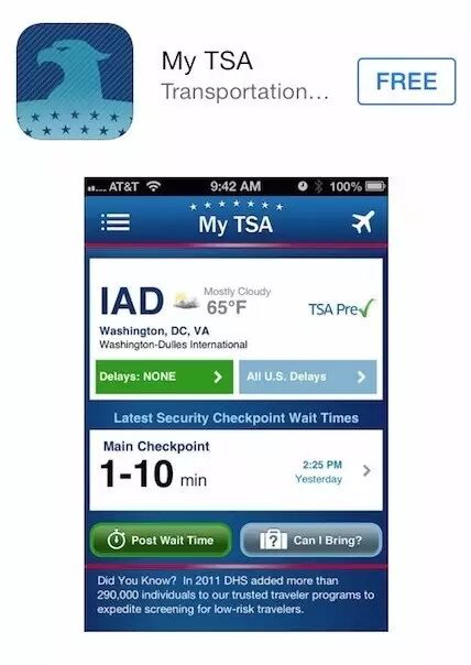 「My TSA」:这款应用会告诉用户在美国许多机场的安检等待时间;