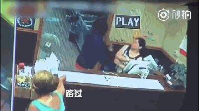 见歹徒还是不依不饶,老板娘干脆直接上手抢枪了……