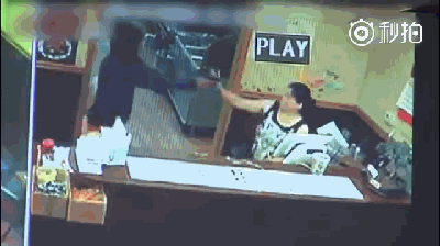 期间老板娘一直悠闲地站在一旁看热闹,见歹徒被丈夫制服,她拍了拍手,无聊地走开了……