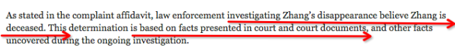 然而关于章莹颖的行踪,坏消息再次降临,伊利诺伊州中部地区联邦检察官办公室发布公告说,综合各种证据,负责调查案件的执法人员相信章莹颖已经死亡。