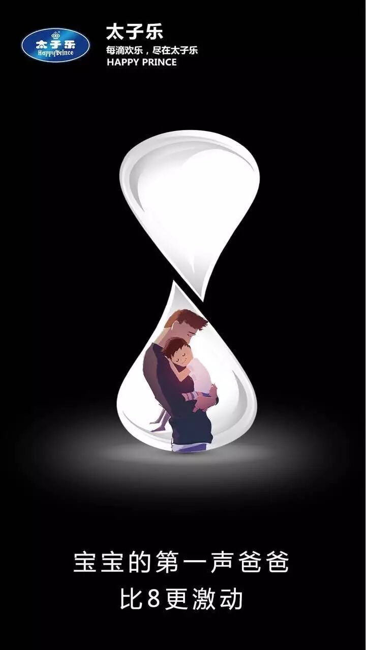 点评:虽然是文字梗,但立意很好。唯一担忧的是,宝宝的第一声妈妈或者爸爸,通常只发能发单个字音(ma或者ba),所以用拼音 BA 可能会更好。
