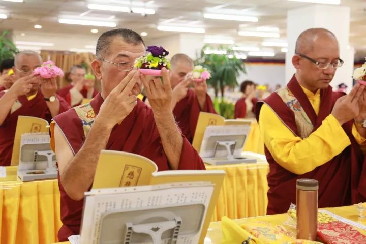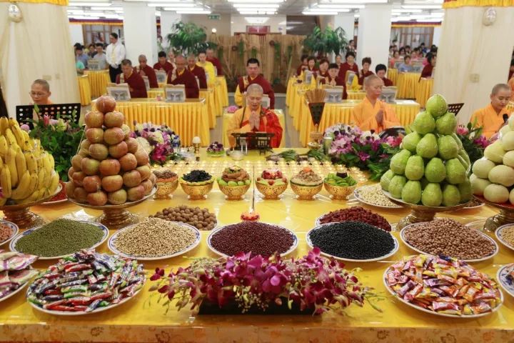 法会期间,举行了庄严的午供,至诚供养十方诸佛菩萨。