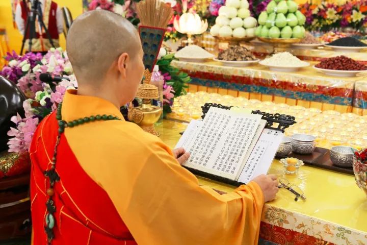 上午九点,僧众威仪、梵呗妙音,法鼓齐鸣庄严的佛号与众人诵经响彻虚空,一片吉祥!