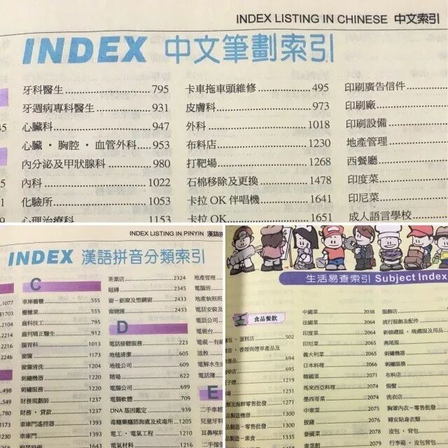 黄页的目录轻而易见,内容包罗万象,读者可以用中英双语搜索方法查找资料!听起来是不是棒棒哒? :)