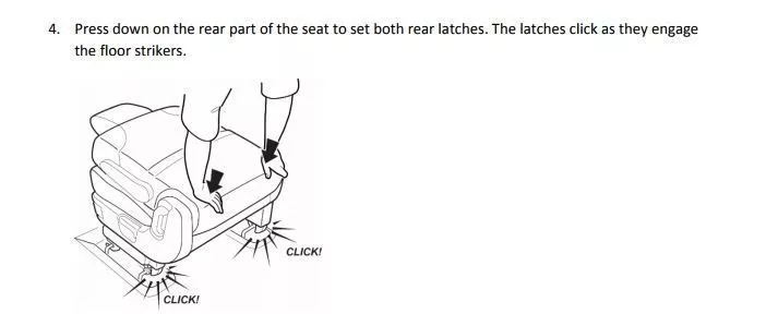 按下座椅的后部,对准两个后锁。当它们扣住之后可以听到咯噔一声。