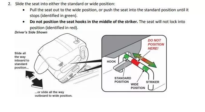 用后座的Rear Latch‘后锁’来调整标准式或者宽松式的位置。千万不要放到中间红色的区域。