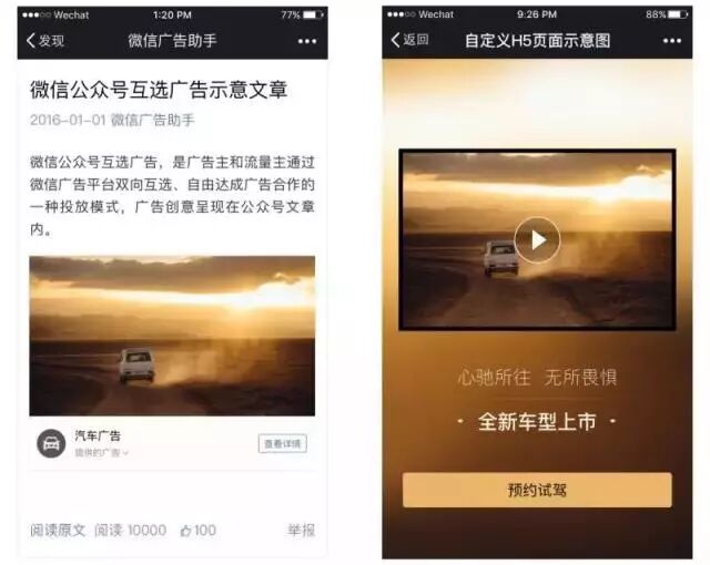 随着微信广告全量支持投放小程序,无形中为品牌想要持久留住用户,打造更精细的平台提供了多元化流量入口。有些小程序大V,如“有车以后”利用小程序能力,开发新的广告形式(开屏广告,详情点击)也完善了微信广告的形态。