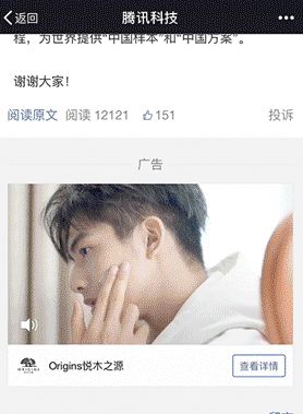 以6~15秒视频,展示于公众号文章底部,原广点通的广告位置。用户点击视频区域、广告主头像或名称、“查看详情”按钮均可跳转至推广页。