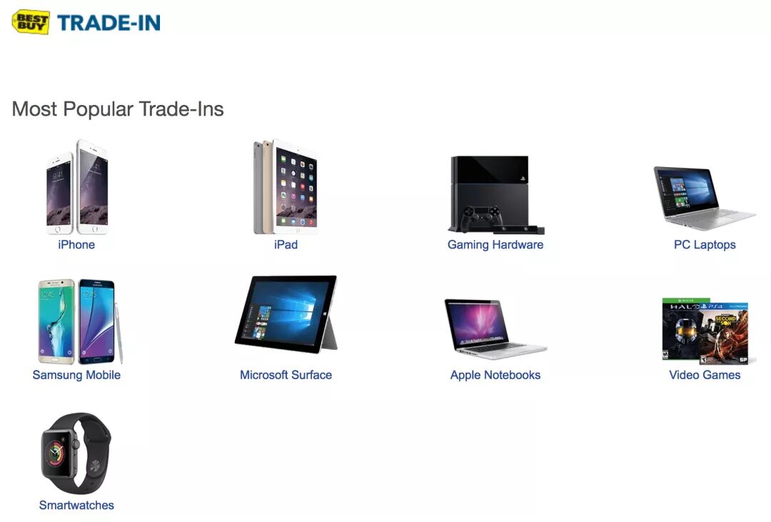 一些大型电商或者网站,会有自己的Trade-in项目,收购你手上的闲置电子产品,以电脑、手机类居多,家电较少。一般来说,报价公道、结算周期短、信誉也好。局限是不能现金、支票或者Paypal付钱,只给各家的Gift Card或者购买新一代电子产品的现金抵用券。