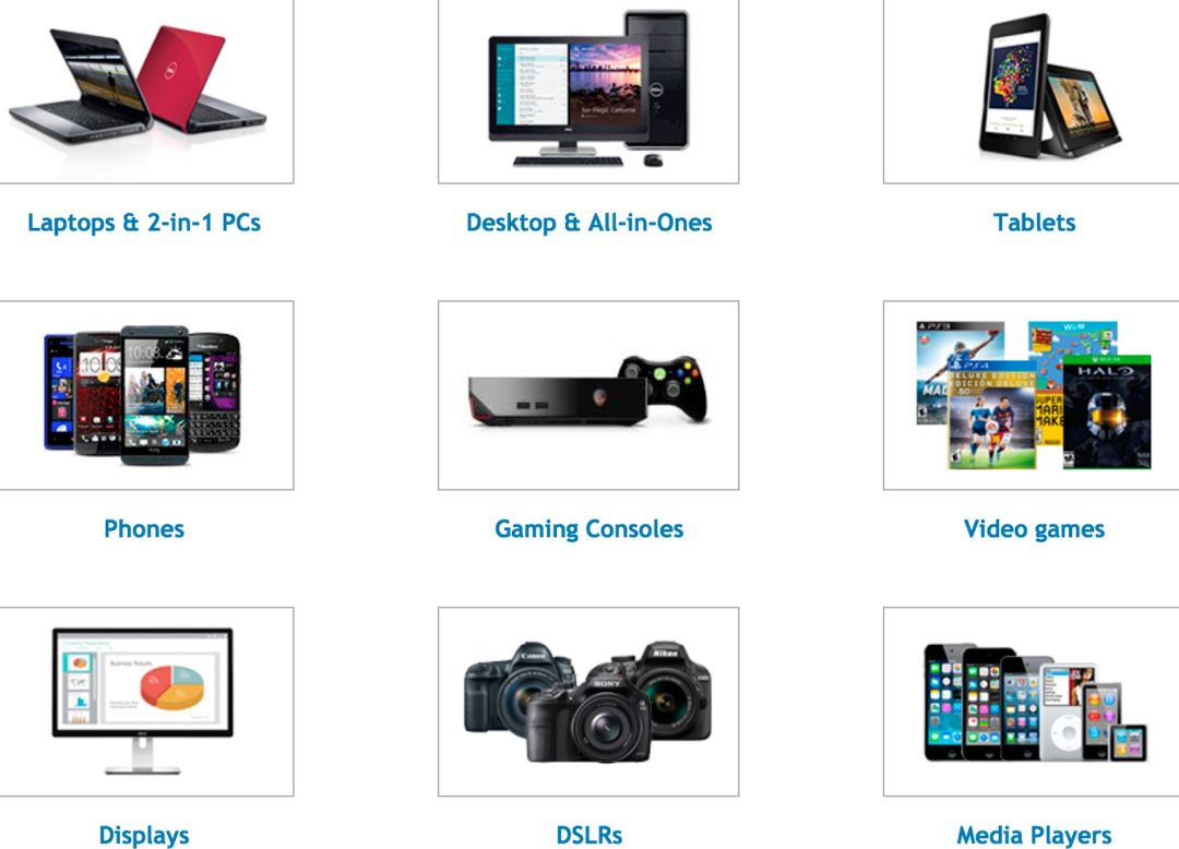 虽然是以Dell的Gift Card结算,但是不只收购二手的戴尔产品,其他品牌的也接受。收购的种类也很多,除了电脑、手机、平板、游戏机等,还可以来Trade-In数码照相机。