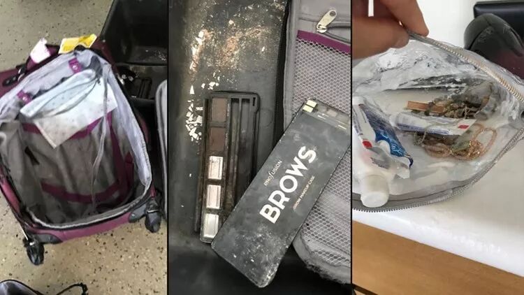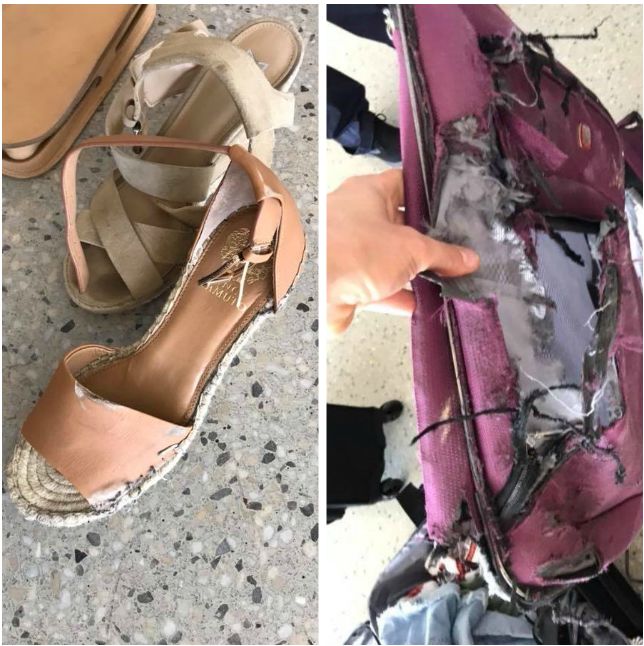 “我們在DFW(達拉斯-沃思堡國際機場)降落,之後我跟老公去行李轉盤那裏等著拿箱子。”Kristen說,她老公的箱子一早就出來了,可是她的箱子始終不見蹤影,“我們眼看著同機的所有旅客都拿到走光了,我去問AA的工作人員,他們指著一個行李托盤,我一看,那些就是我的東西。”可惜,此時Kristen的箱子已經大變樣: