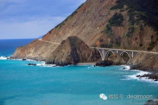 大家都在照片上看过了。这条700英尺长,200英尺高的单跨混凝土拱桥已经是一号公路的最著名地标之一。你的车可停靠在大桥的任意一端,下来观望和拍摄。再往前,一号公路经过所谓的飓风点Hurricane Point。顾名思义,这里风力巨大,但景色开阔。