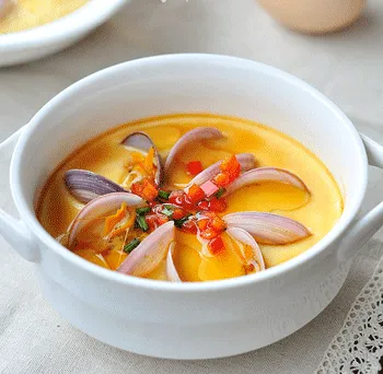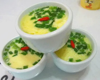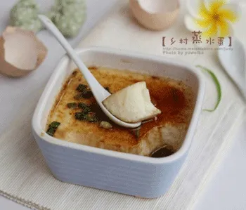 6、蒸好的蛋羹吃的时候淋上步骤5中的料汁即可。