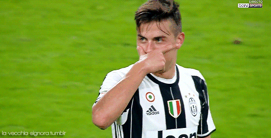 每次进球以后,迪巴拉都有一个庆祝动作,就是喜欢在脸上比√的手势。