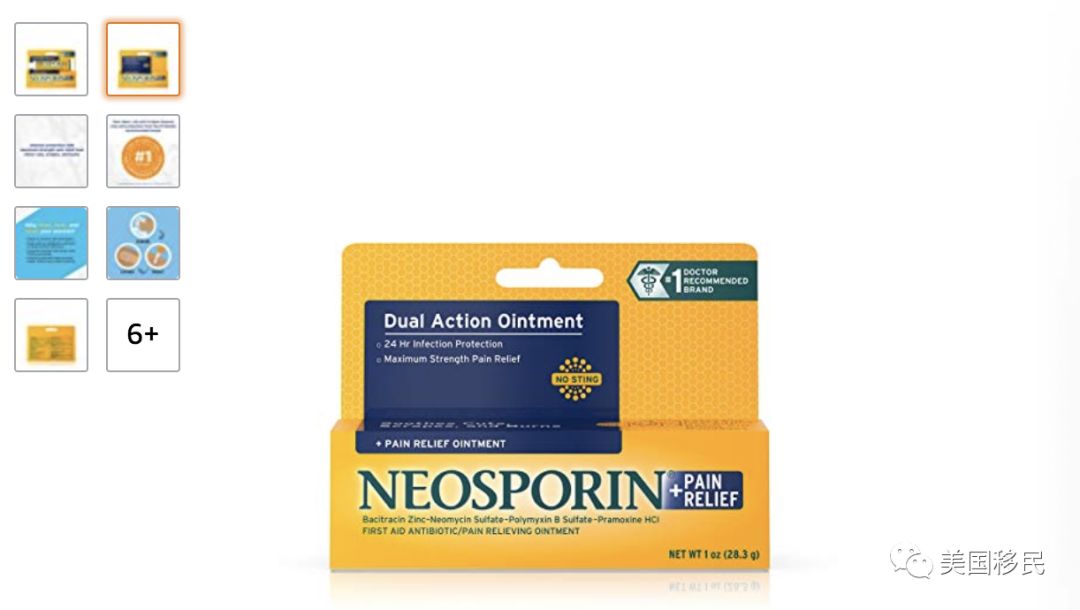 类似于中国京万红软膏的烫伤产品,在美国的超市中有Nepsporin抗菌软膏,它可以杀死皮肤上的细菌防止感染。