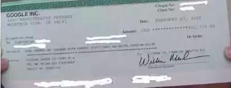 2006年6月,他贴出了一张谷歌广告给他寄来的90万元的支票,相当于他一天赚3万美元。