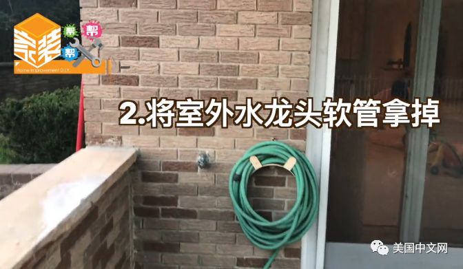 将接室外水龙头的软管拧下来,将屋外的水阀打开,让积水流出