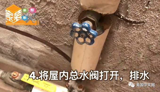 再将屋内的总水阀打开,放出水,管道里就不会有积水了。