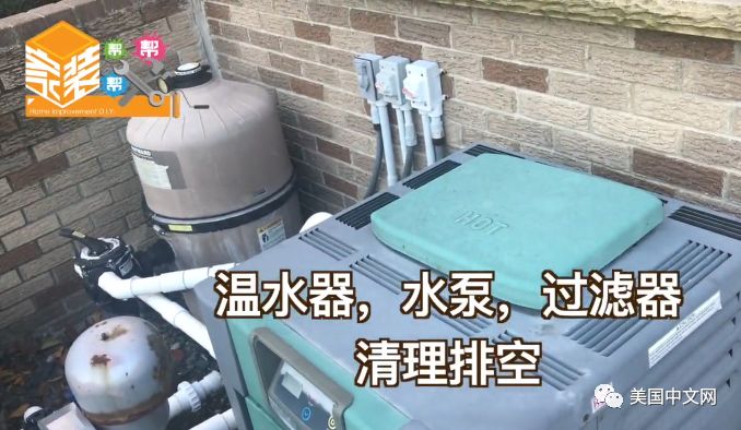 泳池的温水器heater,水泵pump,过滤器Filter也要清理干净,排空所有管道内的水,以防冬季水管冻裂,最后可以用blower把它们通通吹干净。