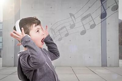 平常给孩子放歌听时,鼓励孩子跳起来,跟随着音乐的节奏舞动身体。