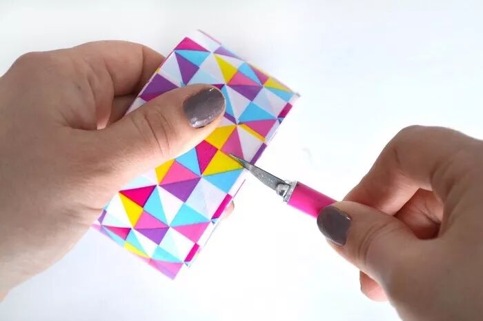 小旗帜怎么加?超简单!先掰开回形针的一边,把彩色胶带粘上去,用剪刀剪出旗帜的样子,再将回形针掰回去就好啦~