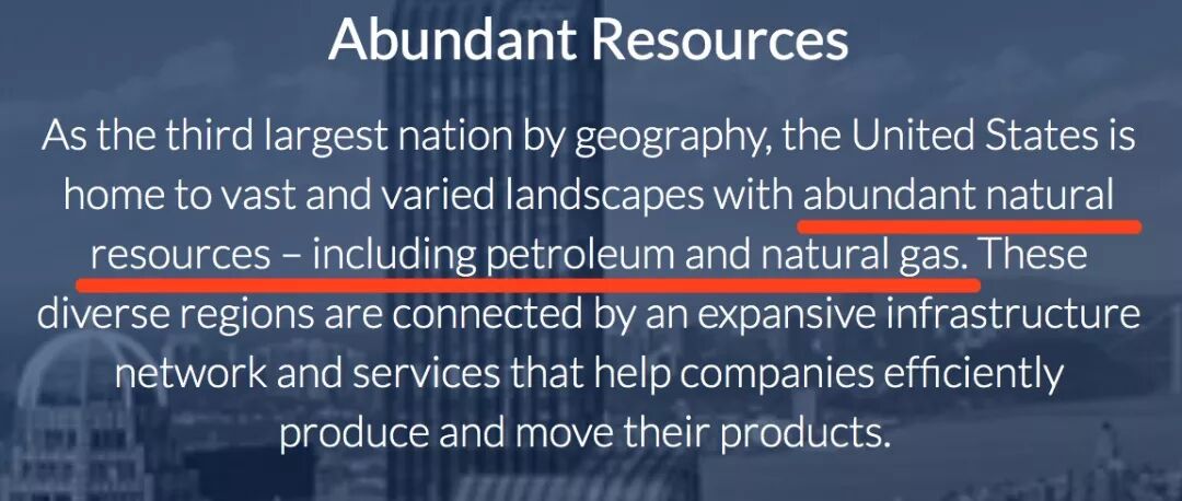 美国作为国土面积第三大的国家,充足的自然能源是产业发展的支柱力量。幅员辽阔的国土更有助于公司开拓业务,发展规模。