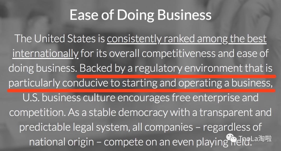 美国的商业是自由主义市场经济,政府并不对商业做过多的管制和干预。对于想在美国创业的人,这就意味着更多的自由和对自己企业更多的控制力。