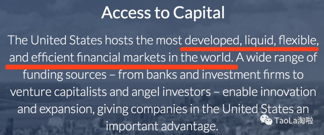 美国拥有最发达,流动性、灵活性较强的高效市场,有坚实的投资资本基础,这为支持企业创新、融资、扩张都提供了很多的助力!