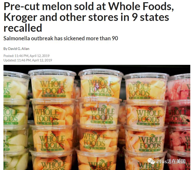 上周,还有一次全美范围内的食品召回事件,美国疾病控制与预防中心上周五宣布,由Caito Foods LLC公司所生产的一款预先切好的哈密瓜、西瓜、密瓜混合水果,因为可能收到沙门氏菌污染,而被全美召回。