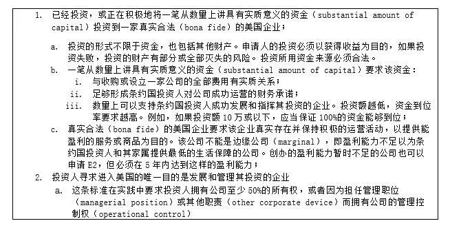 因此,在普通商业计划书的基础上,E2商业计划书的目的多了一项,就是证明申请人满足下面这些E2签证相关法律法规对投资和企业经营的要求: