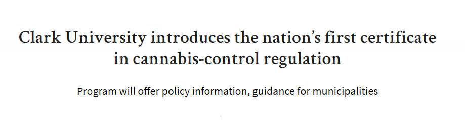 克拉克大学位于麻州伍斯特,随着麻州于2016年正式推出大麻合法化,随之而来待解决的问题也不在少数,包括如何解决大麻主题的休息室和酒吧,大麻零售店的所在位置,以及如何管理药房周围挤满的游客等等。