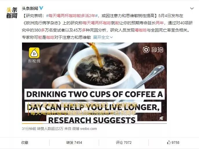 这一研究的主要作者、南加利佛尼亚大学凯克医学院(Keck School of Medicine)预防医学副教授韦罗妮卡·W·塞蒂亚万(Veronica W. Setiawan)表示:“无论被试者喝普通咖啡还是无咖啡因的咖啡,死亡率都更低,表明这一相关性并不依赖咖啡因而存在。尽管我们不能说喝咖啡可以延长寿命,但我们看到了这种相关性。如果你喜欢喝咖啡,那就喝吧!如果你并不喝咖啡,那你需要好好考虑下是否要开始喝了。”