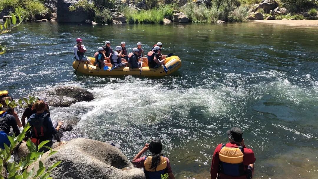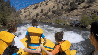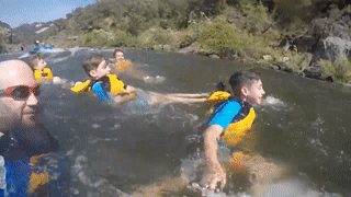 难道船翻了?我们刚要伸手去救,结果被教练阻止了。原来是几个美国爸爸觉得坐船还不够刺激,直接带着娃跳到水里,顺着水流漂流而下。