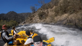 在一些陡峭的河段,更有点像坐过山车一样,水流猛地把船托到最高处,然后瞬间又落到谷底,你就眼瞅着前面高高的水浪,翻滚着浪花朝你扑面而来。