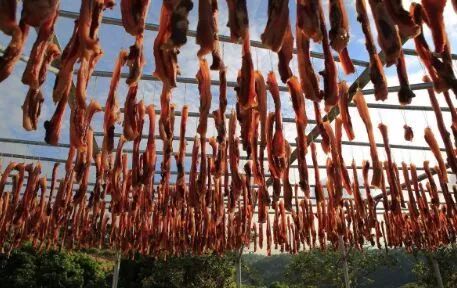 在中国南方的很多地方,过年的时候家家户户几乎都会在阳台上、院子里晒出一串串的腊肉。