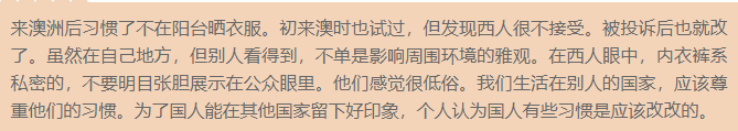 “被投诉后也就改了,生活在别人的国家,应该尊重他们的习惯”