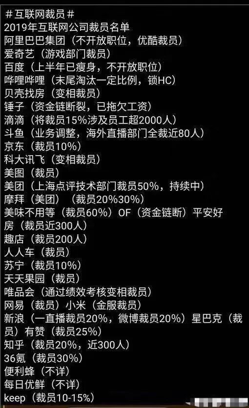 回看2019,各行业裁员消息频出,