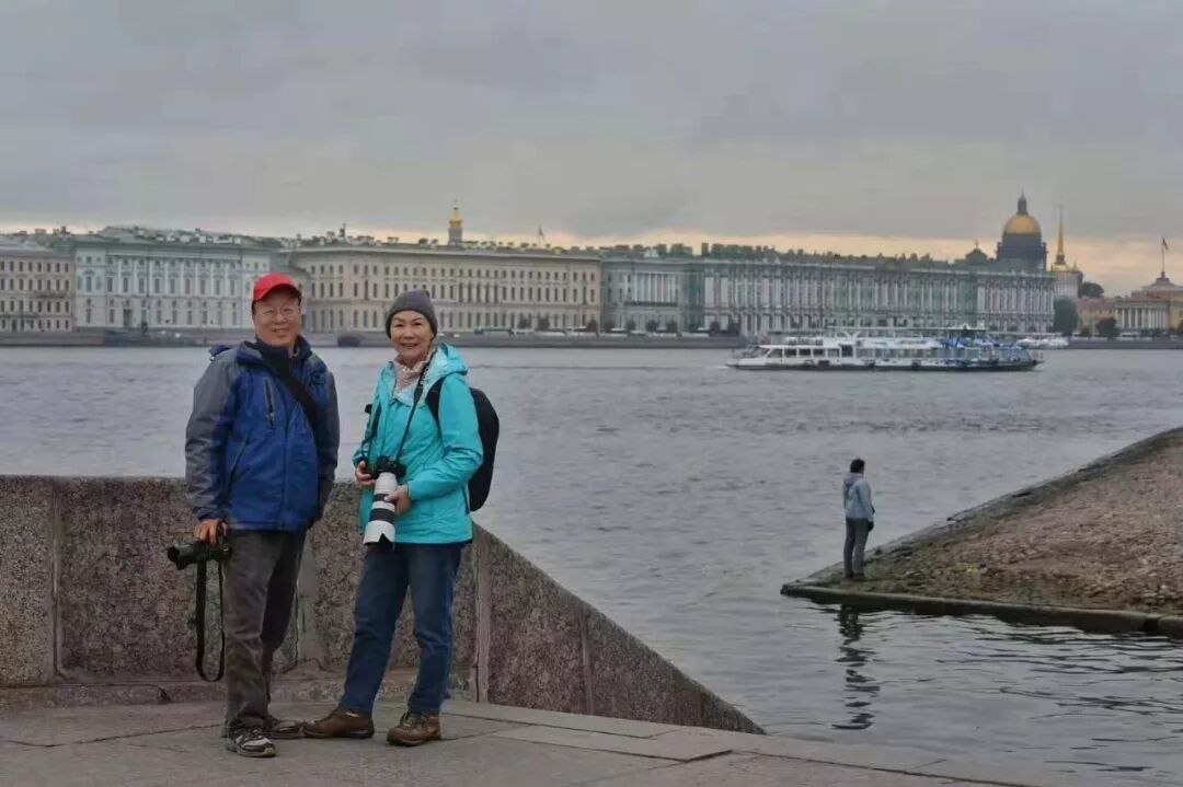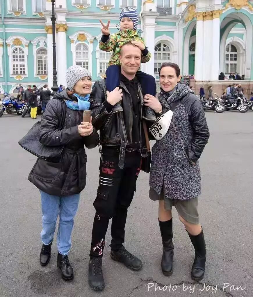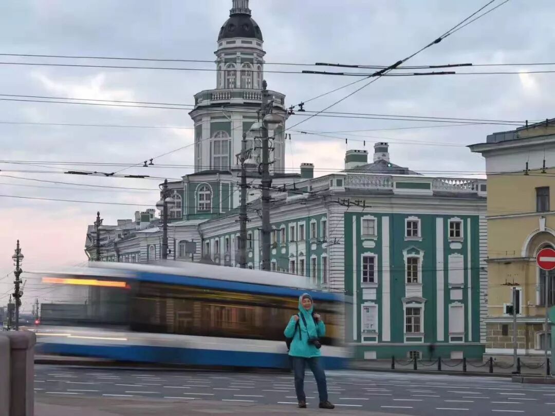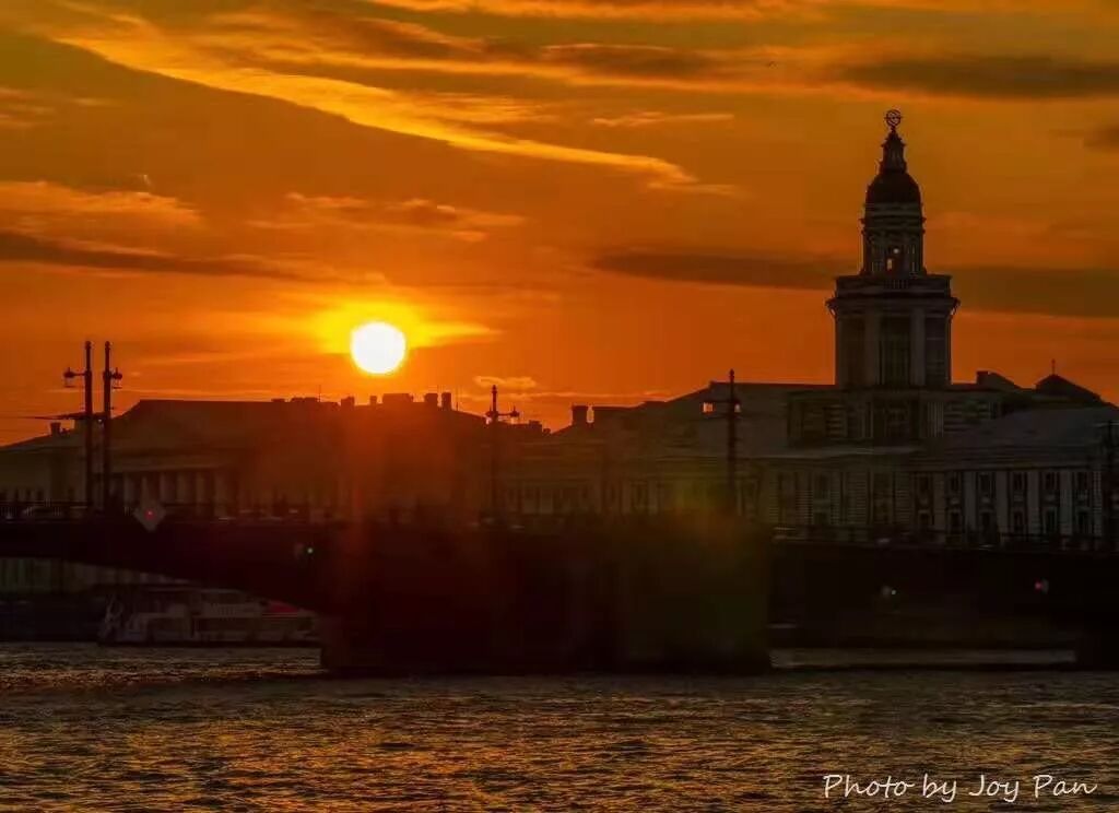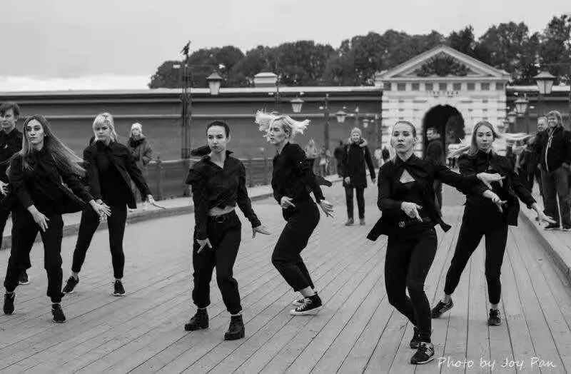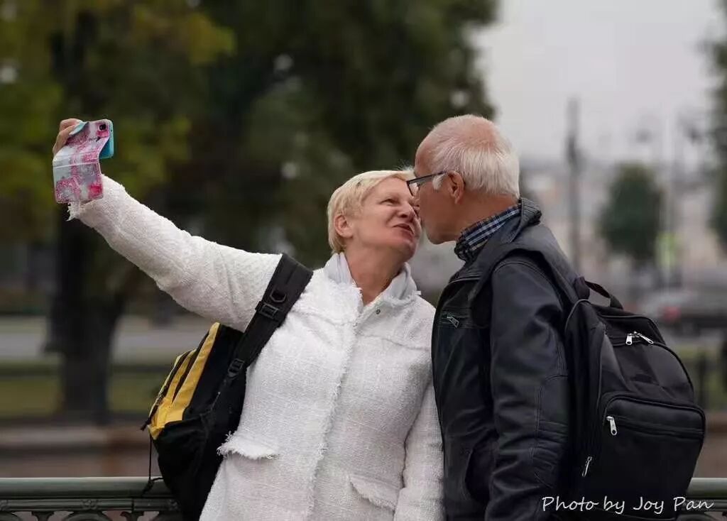 我们在圣彼得堡游览一些胜地,在河边遇上落日晚霞,随手抓拍了一对路人的自拍和一群年轻人在练街舞。