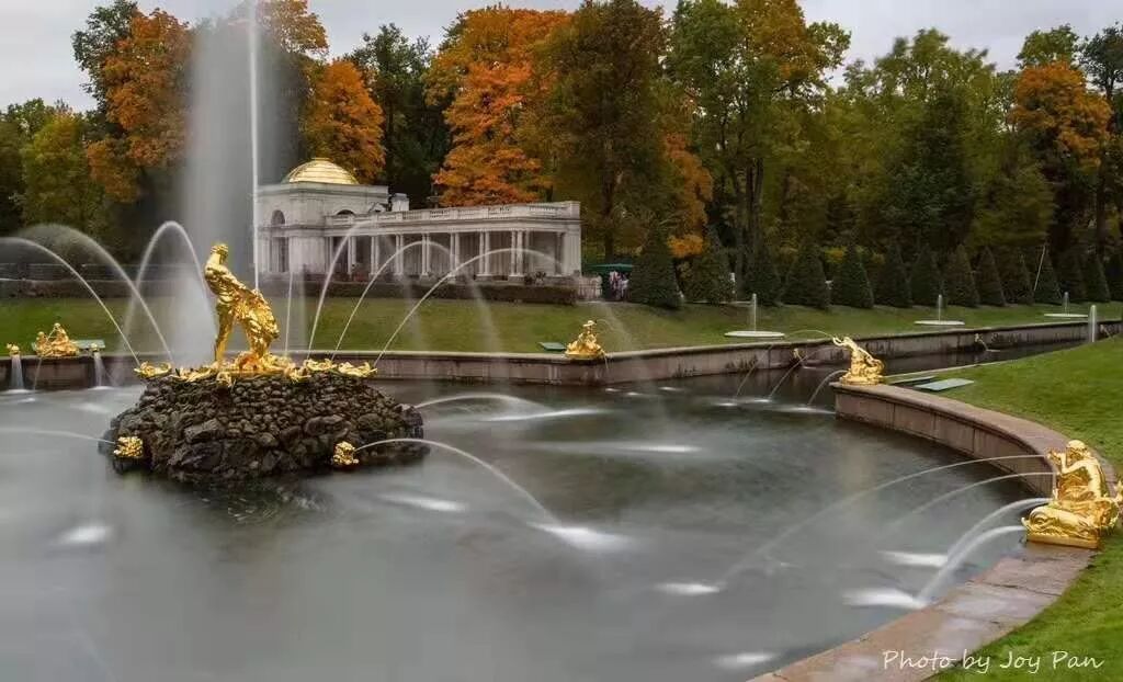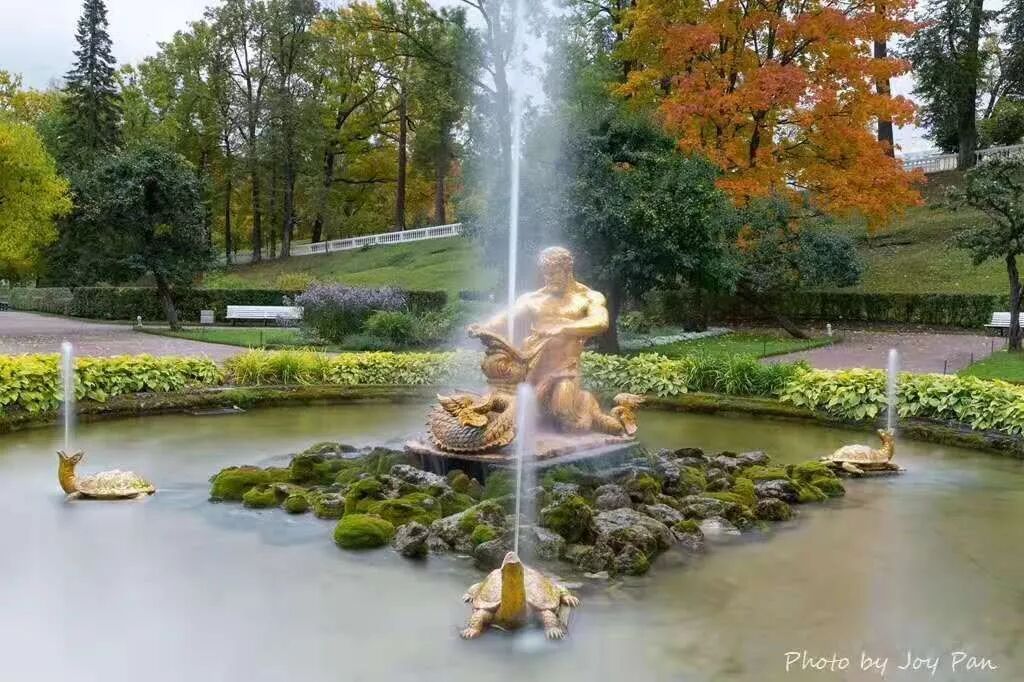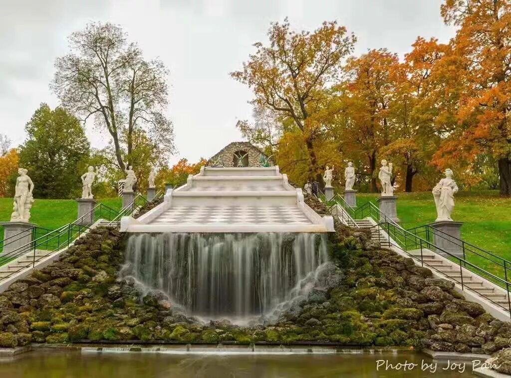 夏宫下花园内梯形多级瀑布喷泉开放时间:11:00-20:15(11点开放时,有“圣彼得堡城市之歌”伴奏);