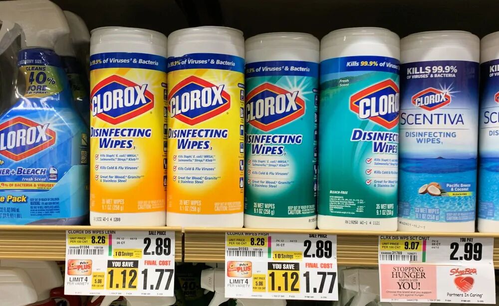 Lysol和Clorox这样的清洁产品,它能杀死的99.9%细菌,包括人类冠状病毒。